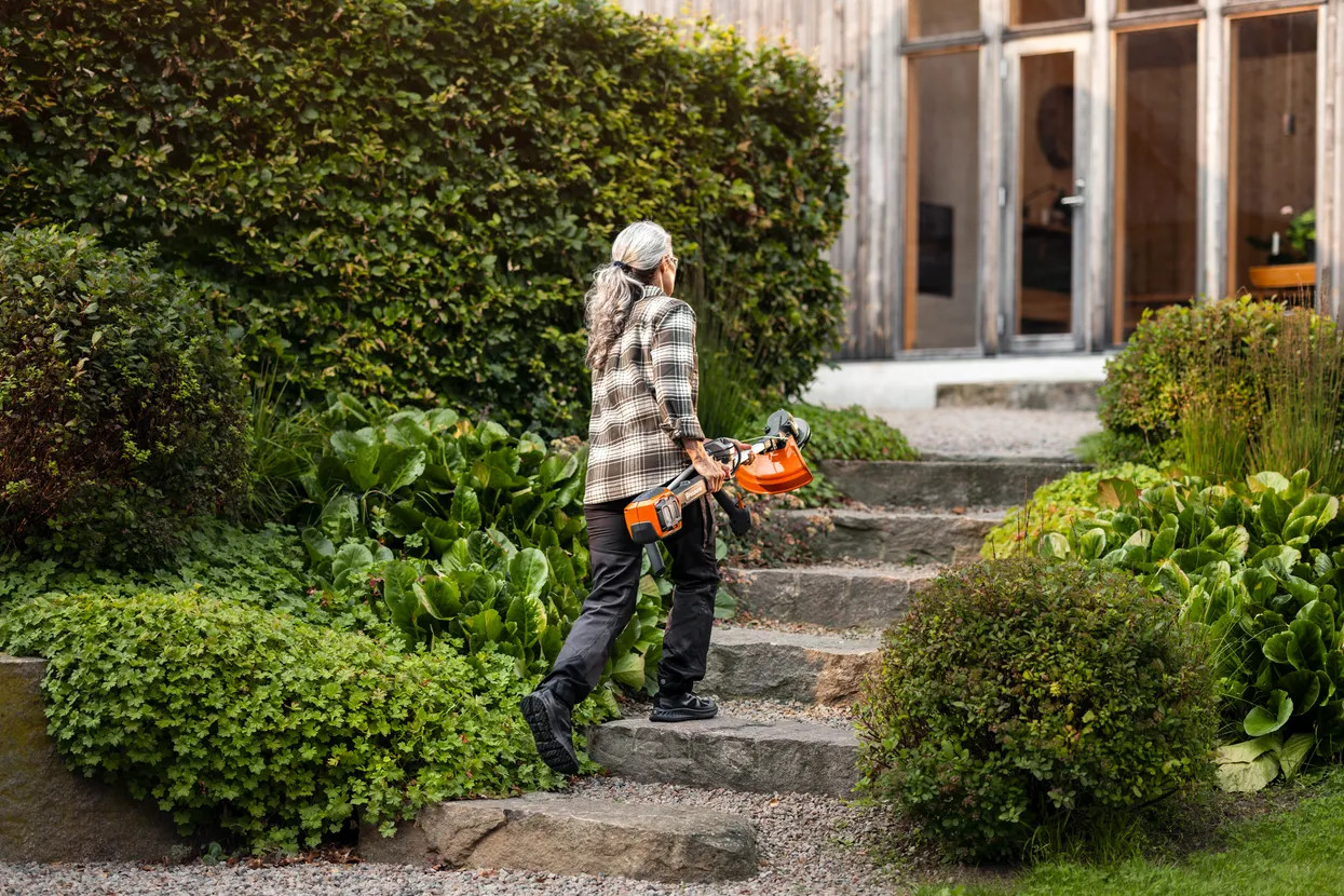 Díky teleskopické hřídeli a sklopným řídítkům lze vyžínač zmenšit až o 70 % pro snadné skladování a přepravu. Chytrá svorka umožňuje rychlé a snadné složení a seřízení řídítek.