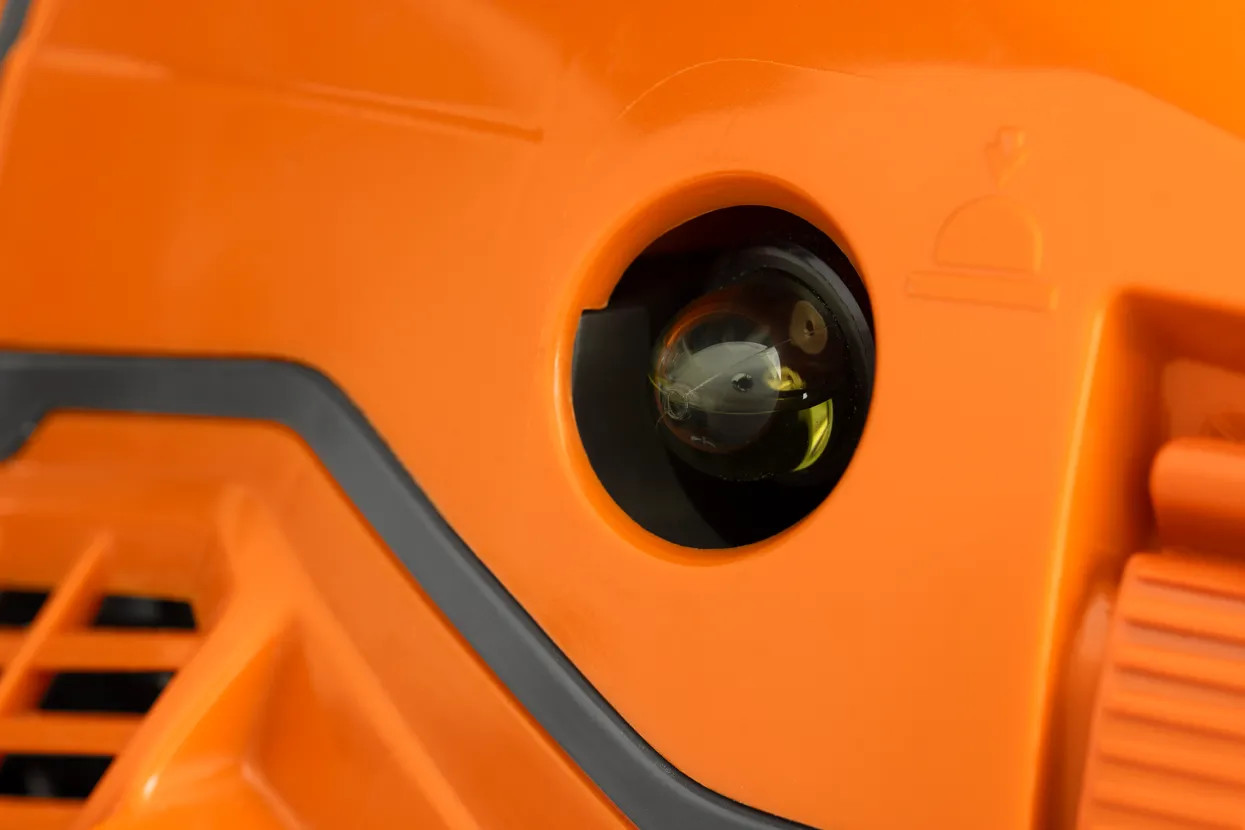 Průhledný indikátor paliva umožňuje snadnou kontrolu hladiny v nádrži.