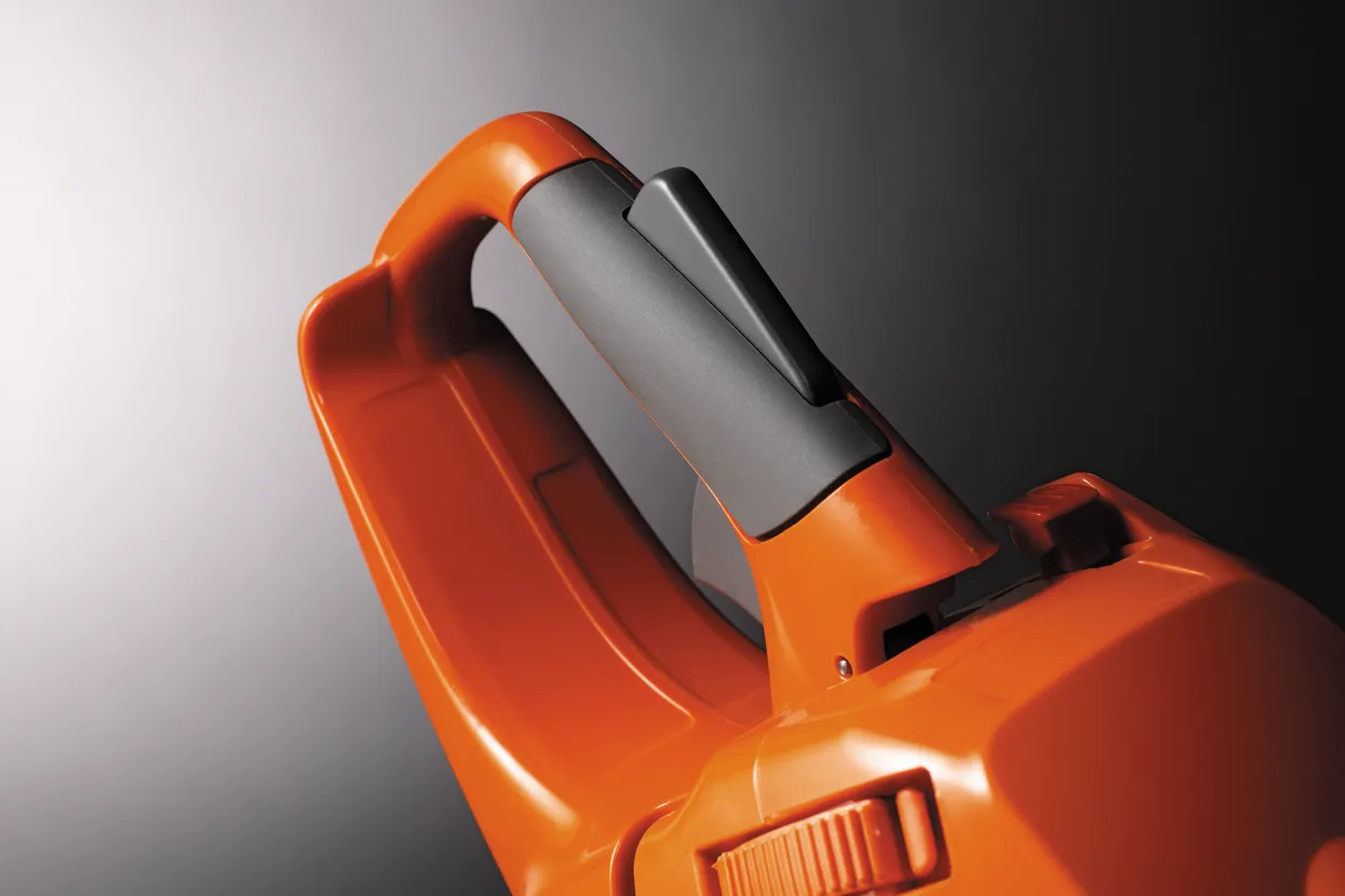 Zvýšený komfort díky měkké výplni, ergonomicky tvarované plynové páčce a asymetrické rukojeti.
