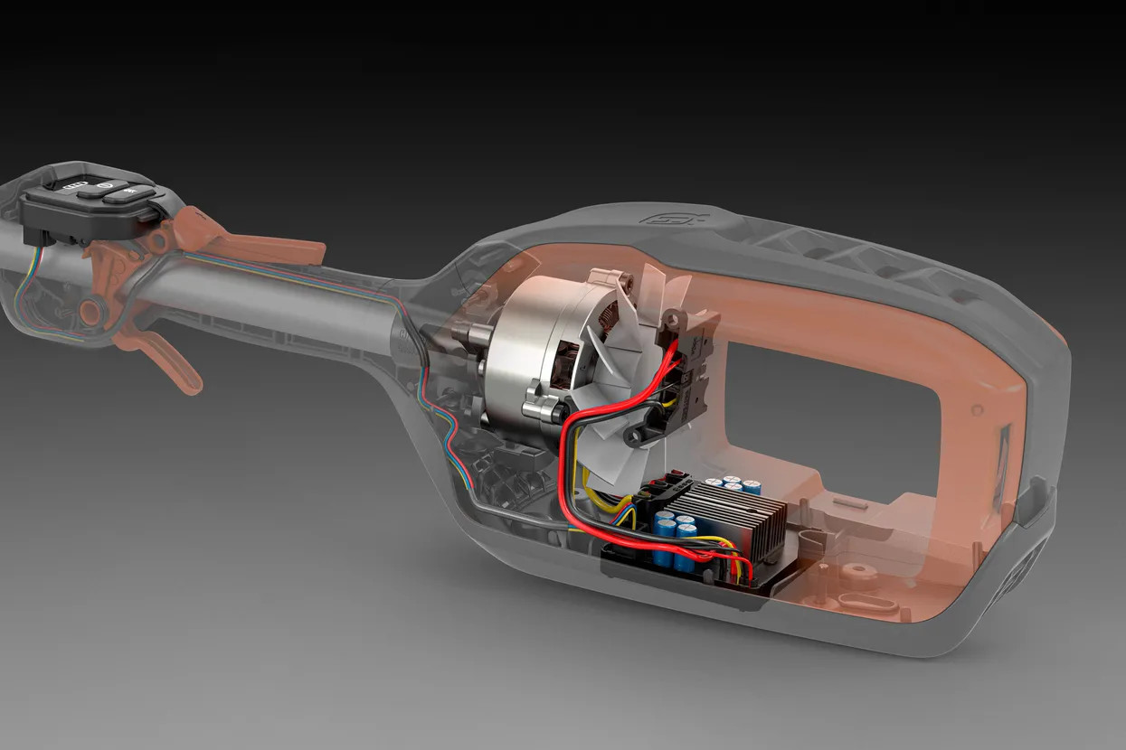 Motory E-TORQ vyvinuté společností Husqvarna jsou dokonale přizpůsobeny pro každou aplikaci. Bezkartáčový design minimalizuje počet pohyblivých součástí a motory jsou konstruovány tak, aby vydržely náročné a dlouhodobé profesionální použití. Jsou zcela bezúdržbové a vydrží po celou dobu životnosti výrobku.