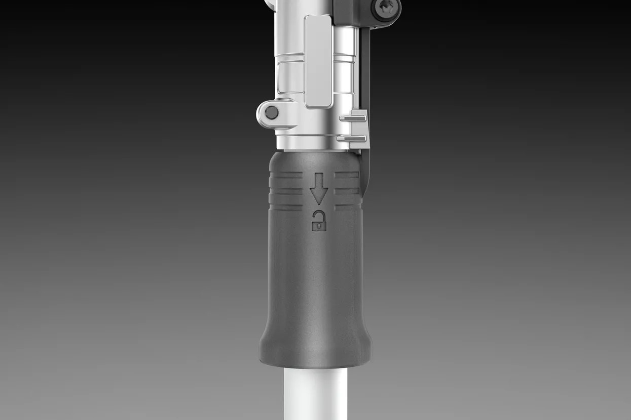 Ergonomicky tvarovaná rukojeť poskytuje vysoký komfort a snadný přístup k ovládacím prvkům.