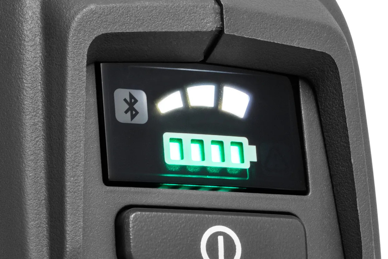 Integrovaný akumulátor s vysokou kapacitou, navržený pro práci ve všech povětrnostních podmínkách. Robustní konstrukce umožňuje až 1500 dobíjení. Efektivní chlazení a intuitivní 4-LED indikátor nabíjení.
