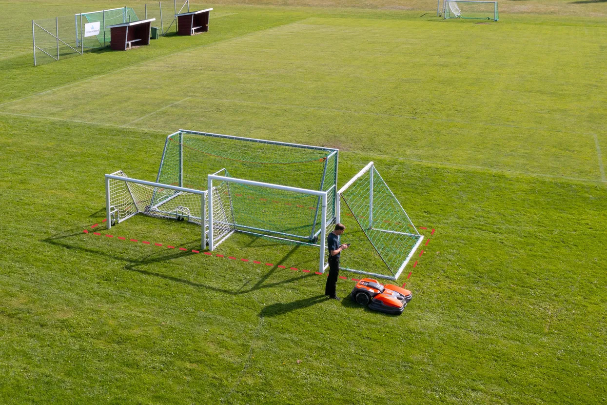 Hybridní trávník ummožňuje robotické sekačce snadnější a efektivnější sekání v úzkých místech a menších plochách. Zabraňuje zastavení robotické sekačky, otáčení na místě a opotřebení trávníku na svazích nebo často sekaných místech, kde jsou omezené možnosti změny vzdálenosti od ohraničujícího vodiče. Umělá tráva 1x1 metr včetně 16 zelených kolíků.