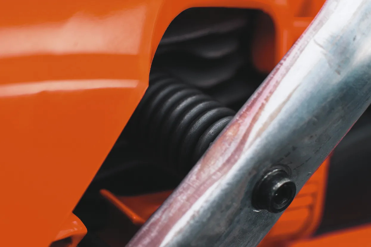 Žádné vyčnívající části, hladký spodek, zaoblený kryt startéru a dobře chráněné ovládací prvky umožňují lehkou manipulaci s pilou.