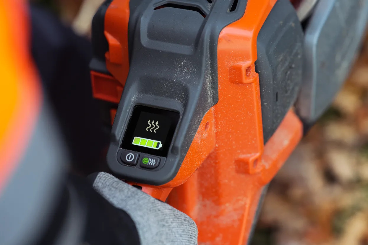 Displej zobrazuje nabití, stav a kondici výrobku a umožňuje snadno ovládat vyhřívané rukojeti a režim SavE™. Jasné zprávy na novém uživatelském rozhraní poskytují informace v reálném čase, což zajišťuje spolehlivé ovládání a efektivní práci.