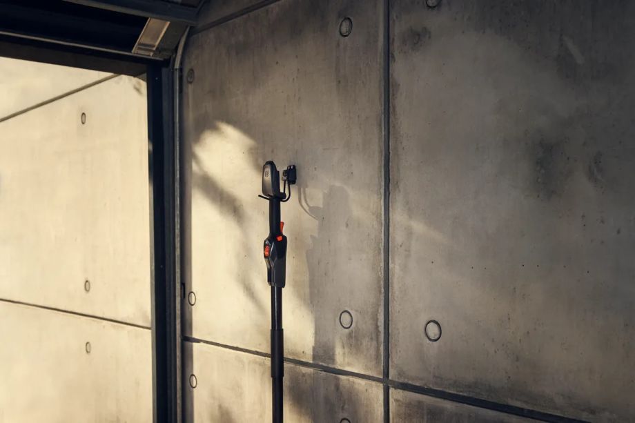 Vlastní úložný hák a kompaktní konstrukce zajišťují snadné uskladnění. Nářadí Aspire™ nemusí být tak objemné díky nastavitelným, skládacím nebo odnímatelným dílům, které usnadňují skladování i přepravu ve stísněných prostorách, jako jsou malé kůlny nebo auta. Pomocí háku, který je součástí každého balení, si můžete vybrat, zda nářadí chcete uložit přímo na zeď nebo zavěsit na naši nástěnnou úložnou kolejnici, která je součástí úložného systému Husqvarna Aspire™. Nástěnná úložná kolejnice se prodává samostatně.