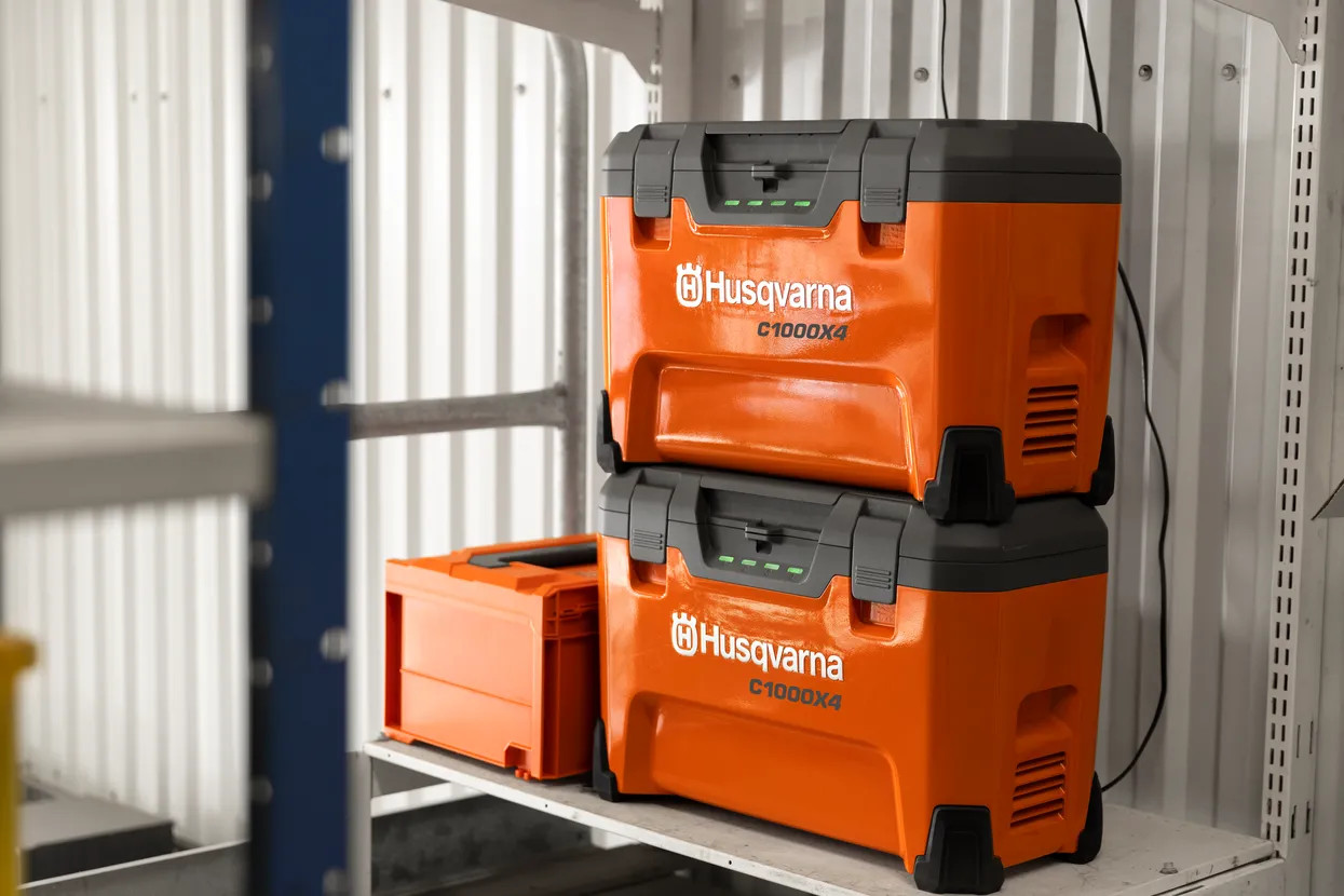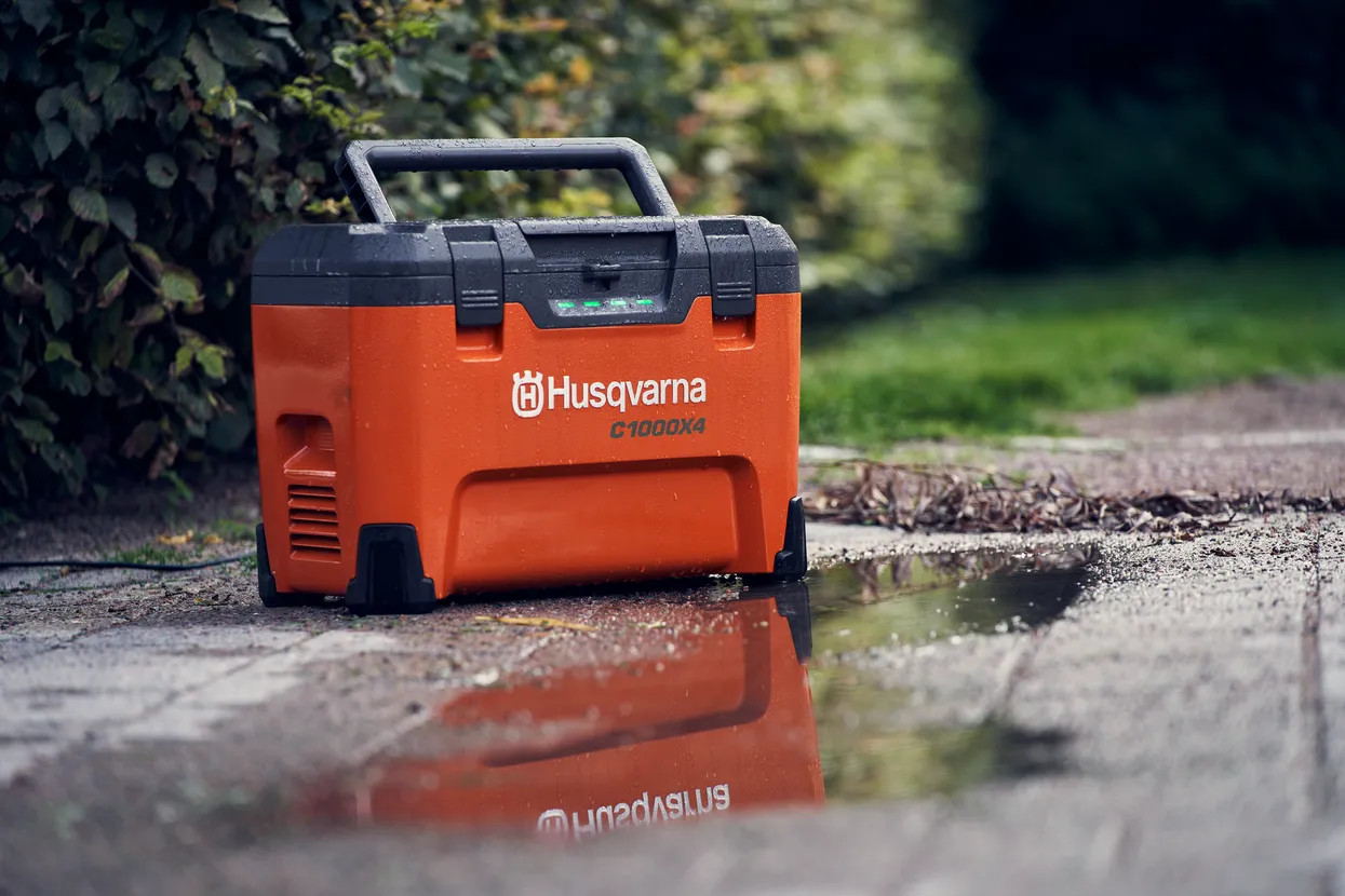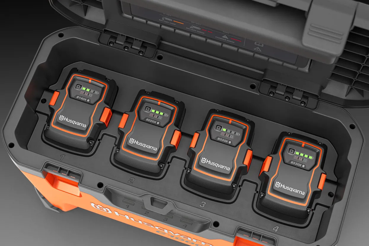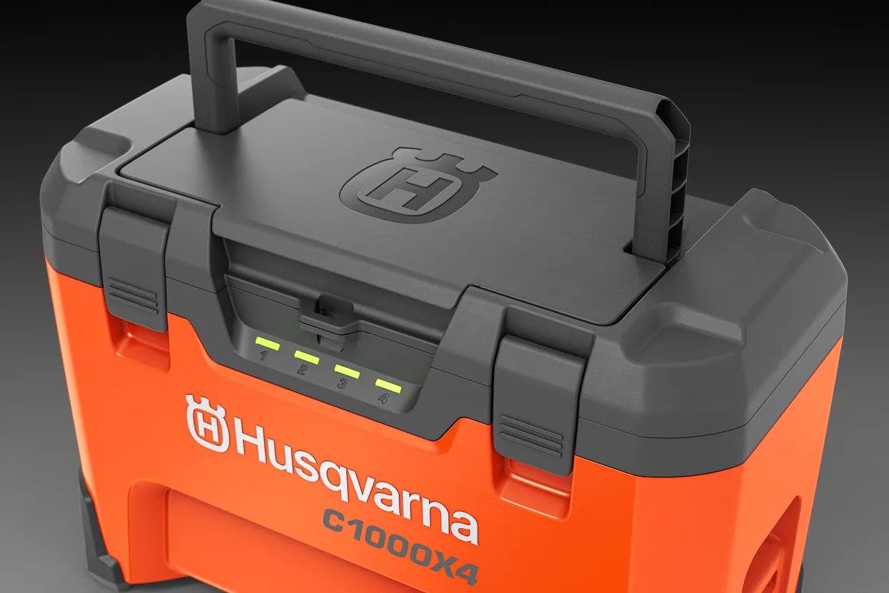 Husqvarna Power Pack C1000X4 is a complete kit that combines a multi-bay charger with four high-performance 36V BLi-X batteries. The portable, IPX4 weather-resistant charger can power up to four BLi-X 36V batteries simultaneously. With smart load balancing, it delivers fast and efficient charging—whether you’re in the workshop, on-site, in your car, or on a trailer.