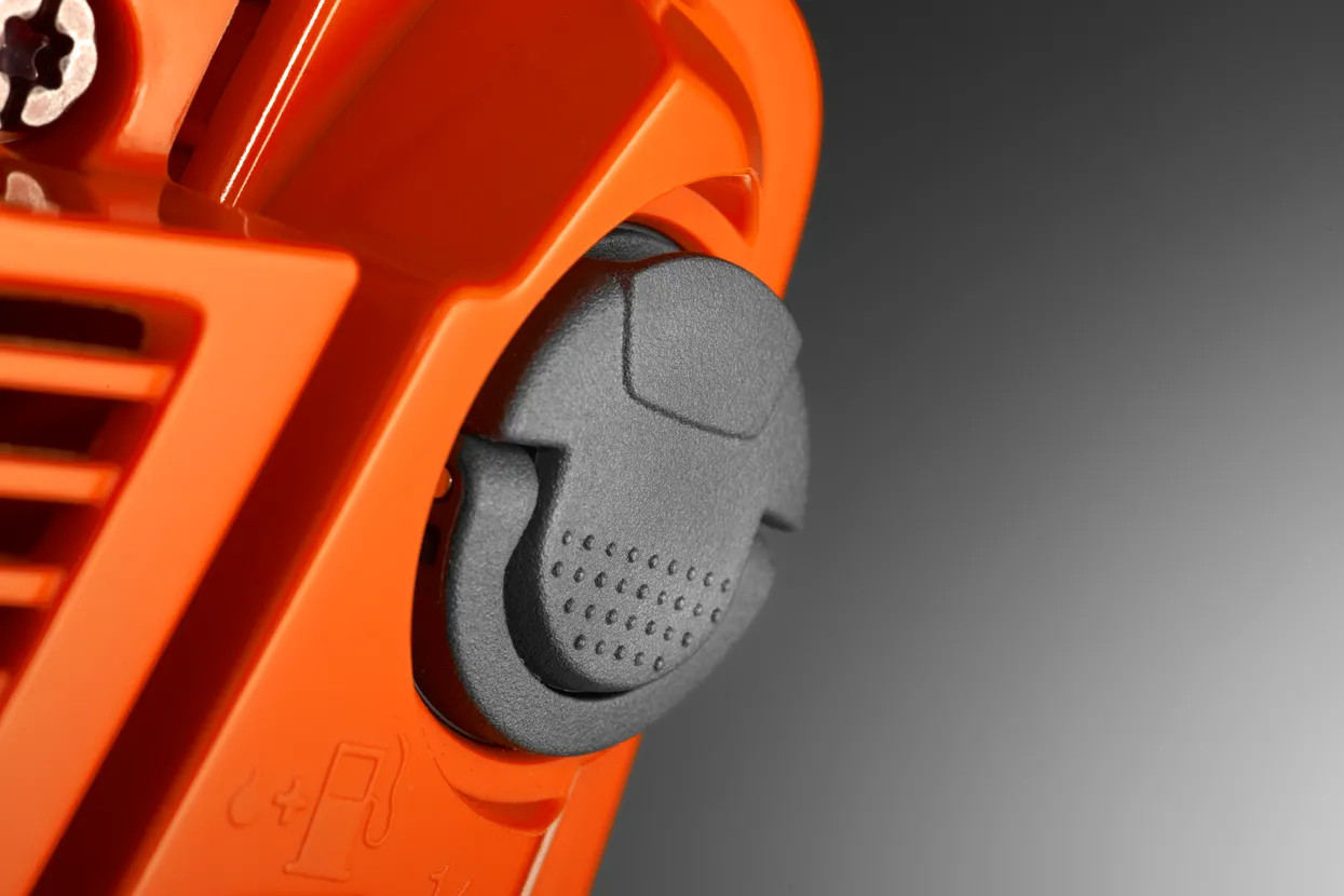 Žádné vyčnívající části, hladký spodek, zaoblený kryt startéru a dobře chráněné ovládací prvky umožňují lehkou manipulaci s pilou.