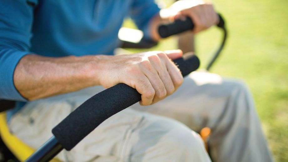 Pro zvednutí, snížení nebo změnu výšky žacího ústrojí během práce stačí jednoduše sešlápnout nožní lištu (standard u řady R).