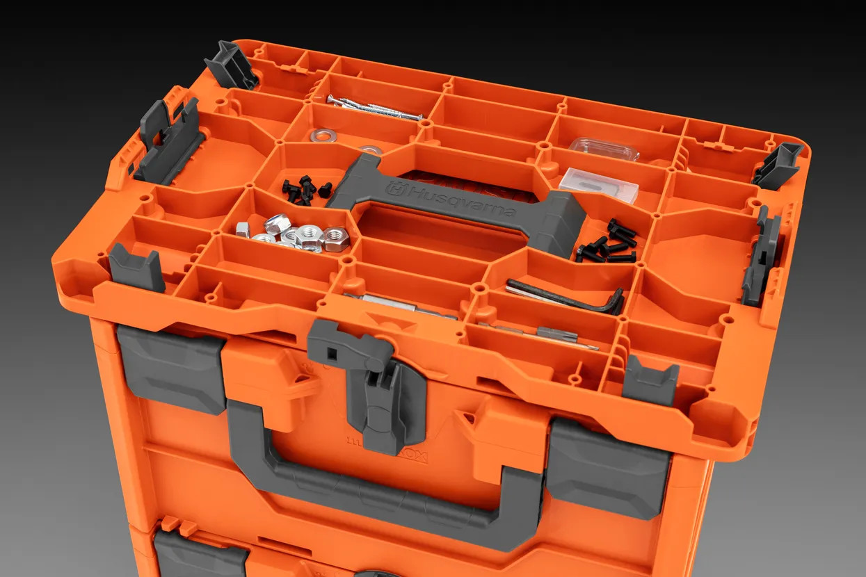 Box na akumulátory B1 Husqvarna je robustní a pohodlné řešení pro skladování a přepravu akumulátorů na pracoviště. Pojme buď 3 akumulátory B540X, nebo 6 akumulátorů B140X, B220X nebo B330X a nabízí flexibilitu pro akumulátory různých velikostí. Ergonomické rukojeti jsou umístěny vepředu i nahoře pro snadnou manipulaci. Důsledně promyšlený design umožňuje skládat boxy na sebe a při použití multiadaptérové desky Husqvarna (prodává se samostatně) je možné box rovněž připojit k systémům boxů jiných výrobců. Obsahuje vložku.