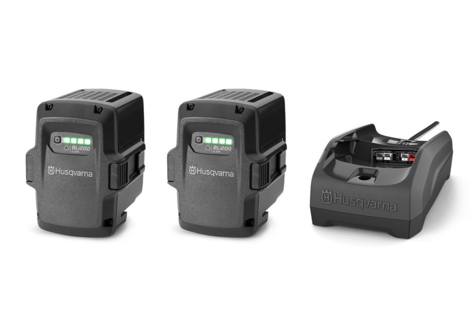 Sada akumulátorů a nabíječky Husqvarna, která obsahuje 2 akumulátory BLi200 a 1 nabíječku 40-C80.